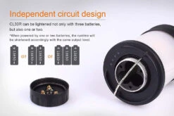Gestestet mit einem 750 mAh NiMH Akku und der mitgelieferten Alkali-Batterie. Die Brenndauer im 100 Lumen Modus ist akkumuliert, da die Taschenlampe nach 3 Minuten Betrieb im 100 Lumen Modus zum 25 Minuten Modus herunterschaltet, dann aber wieder neu mit 100 Lumen aktiviert werden kann. - Material Alu, hard-anodisiert, Korpus schwarz